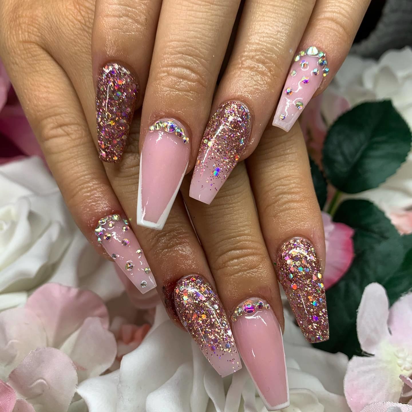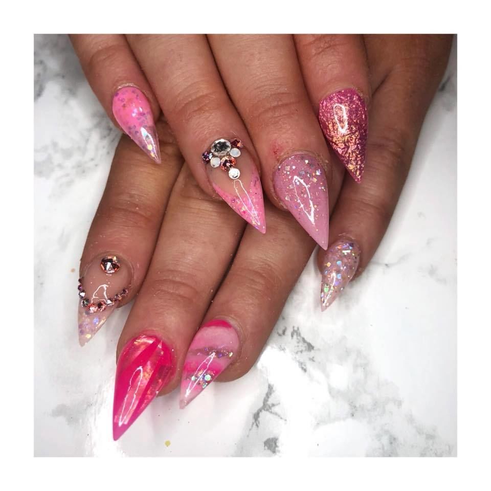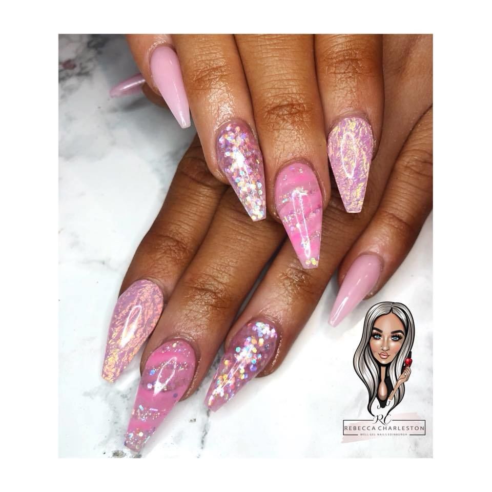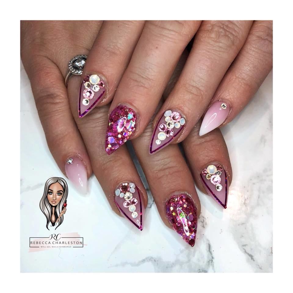 Can never go wrong with pink glam ✨ . . #Edinburgh nails #well gel #pinks it’s #glamnails