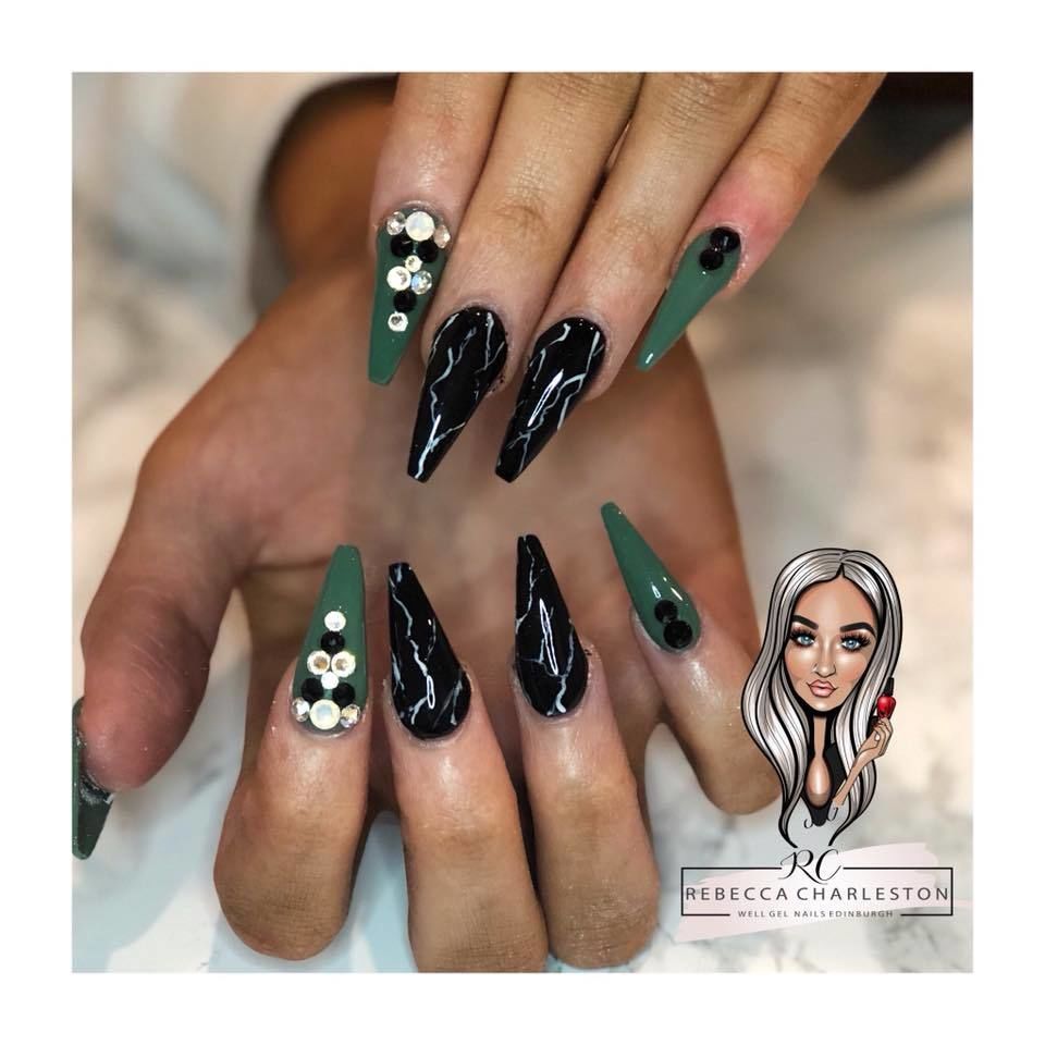 Black has been soooo popular this Christmas #blacknails #swarovskinails #marblenails #nailart #nudenails #edinburghnails #nails