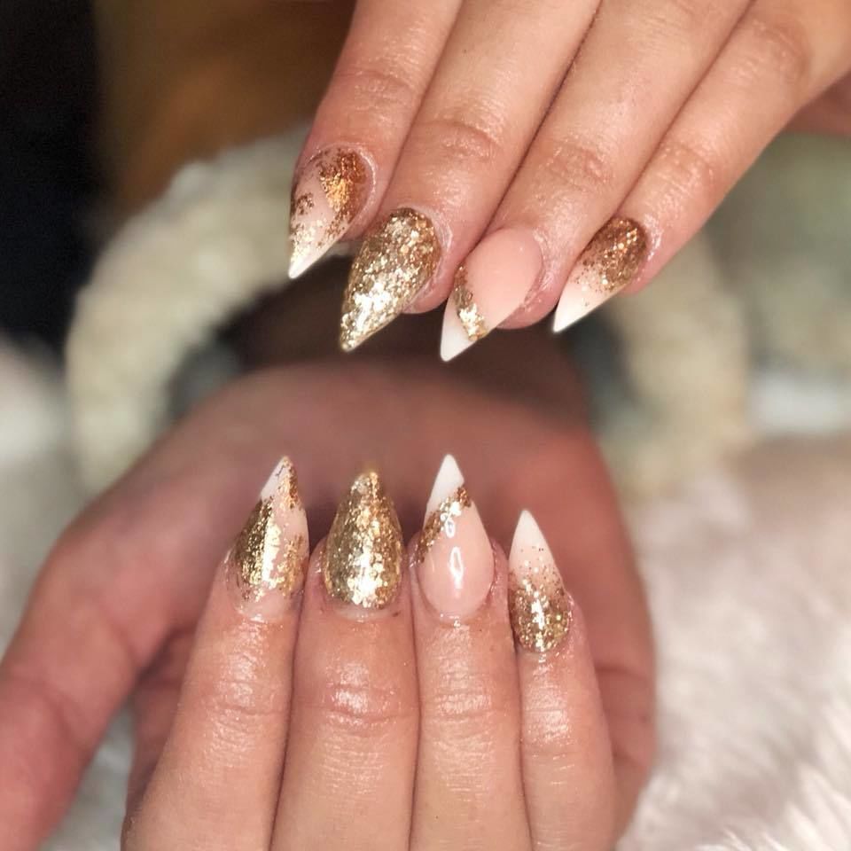 More gold nails ✨ #goldnails #goldglitternails #swarovskinails #glamnails #foilnails #edinburghnails