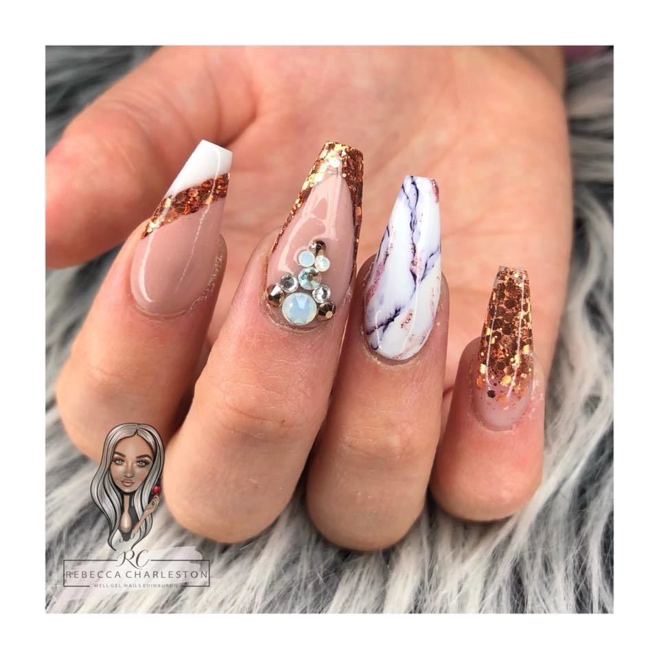 Rose gold is life • • #wellgeledinburgh #edinburghnails #marblenails #rosegoldglitter #rosegoldnails #nails #nailsonfleek #nailart #nailboss